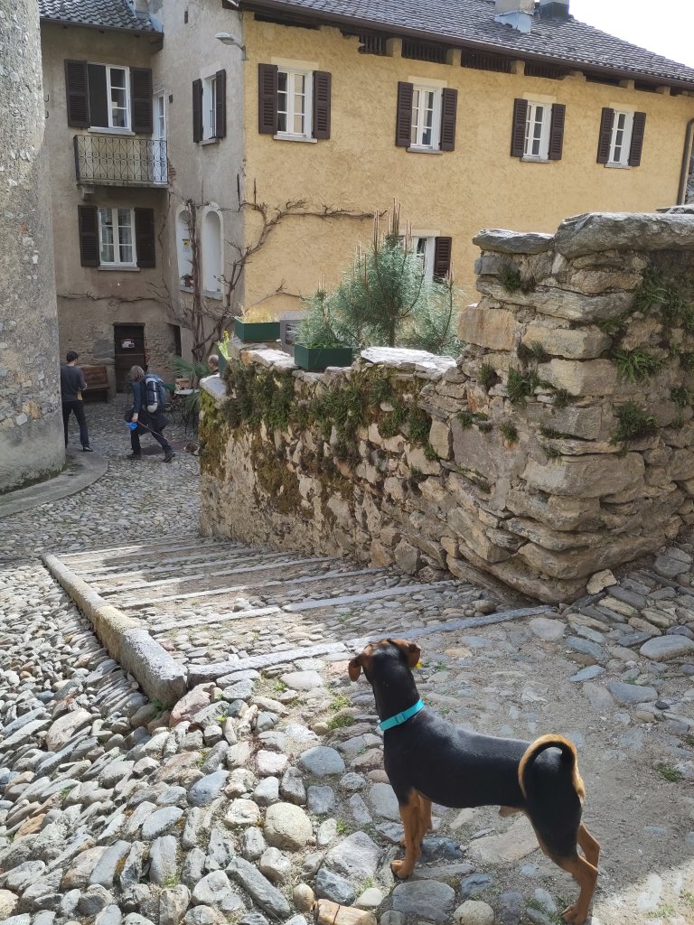 Baspie at the top of the world, overlooking Lago LuganoLooking the other way to Lago Maggiore Dogs in the telecabine up the mountain to hike at the topThe route downI didn’t know the Swiss did mountain top swinging!GentiansLago Lugano from the way down Monte LemaBaspie dog listening to the birdsCow picture for ZukiReturn to the cobbled streets of Miglieglia, where the free bus goes from. It was a great day for just in time catching of all transportBaspie really didn’t like the bus hurling itself around the corners, so tucked himself under the seatbelt for a while