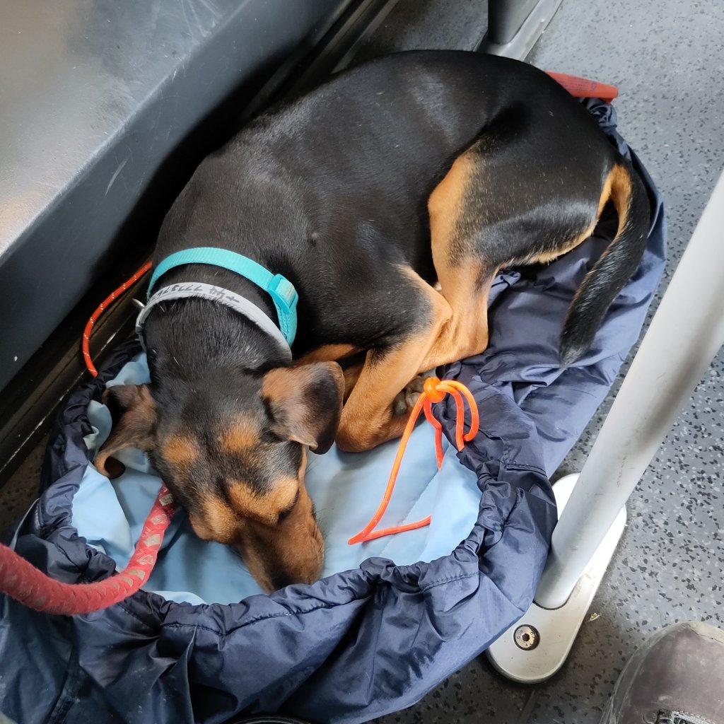 Baspie the railway dog was again tucked under a table in his Nestbedz. I had a ticket for him from a platform machine, and my Interrail ticket sorted on the app for Graz to Bratislava. The change in Vienna was easy, with boards showing platforms and all on time.