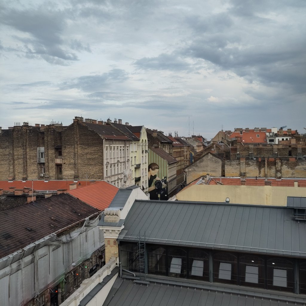 Baspie and I had a rooftop view from our accommodation in the ruin bar area of the Hungarian capital, where bars took over 2ndWW bomb site ruins in the 1990’s. Now a place of pilgrimage for stag dos.