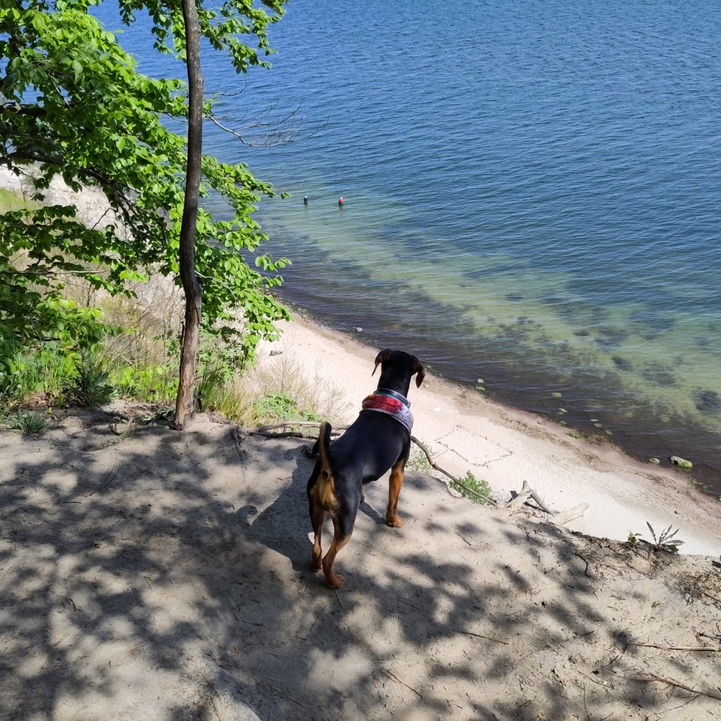 For a lovely outdoor day, Baspie dog and I caught a train, complete with 3zl dog ticket from a machine, to Sopot, a local station just to the NW of Gdansk. We walked to and through the seaside parks of Sopot. Dogs aren’t allowed along much of the beach there, but the parks are great. Heading NW you continue on to some raised cliffs, covered in deciduous woods, mainly beech.