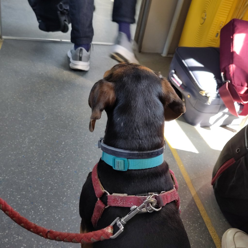 The Railway Dog can sense when everyone is going to get out even when most remain seated, including me. He feels the increased intensity of people fiddling with their stuff and going to the toilet more at the end of the line. It makes him want to get out from his place in the footwell to the corridor. Not a minute more than necessary should be spent on a train. Even a change is good.