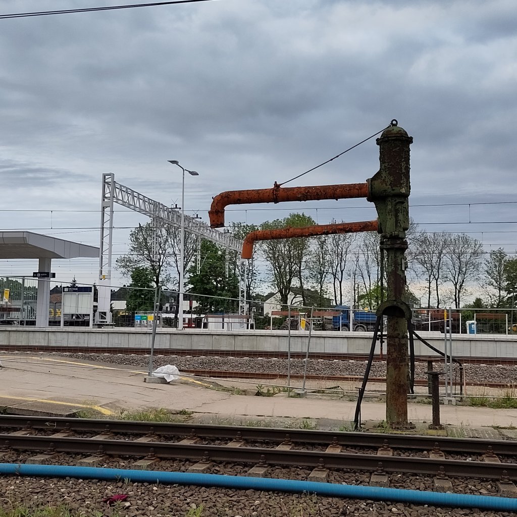 The train to Elk was slow and hard-seated. When the new lines come through I can imagine a big step up for NE Poland. It was crowded on a late Spring Friday afternoon, so the conductor let me sit in a seat reserved for train staff, with Baspie the Railway Dog on my lap, as there was no room on the floor. My hair is looking quite grey these days, and it helps, especially where most older women dye their hair.