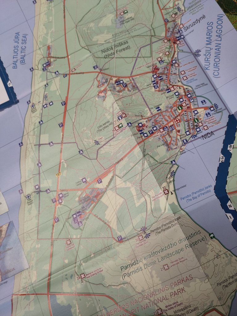 The bus turned out to stop in the centre of Nida, near the supermarket, 22 minutes walk from the campsite. The supermarket is well stocked, including fresh veg, some funky vegan products, such as local salami ‘ham’ and nuggets at reasonable prices, and super cheap oats.