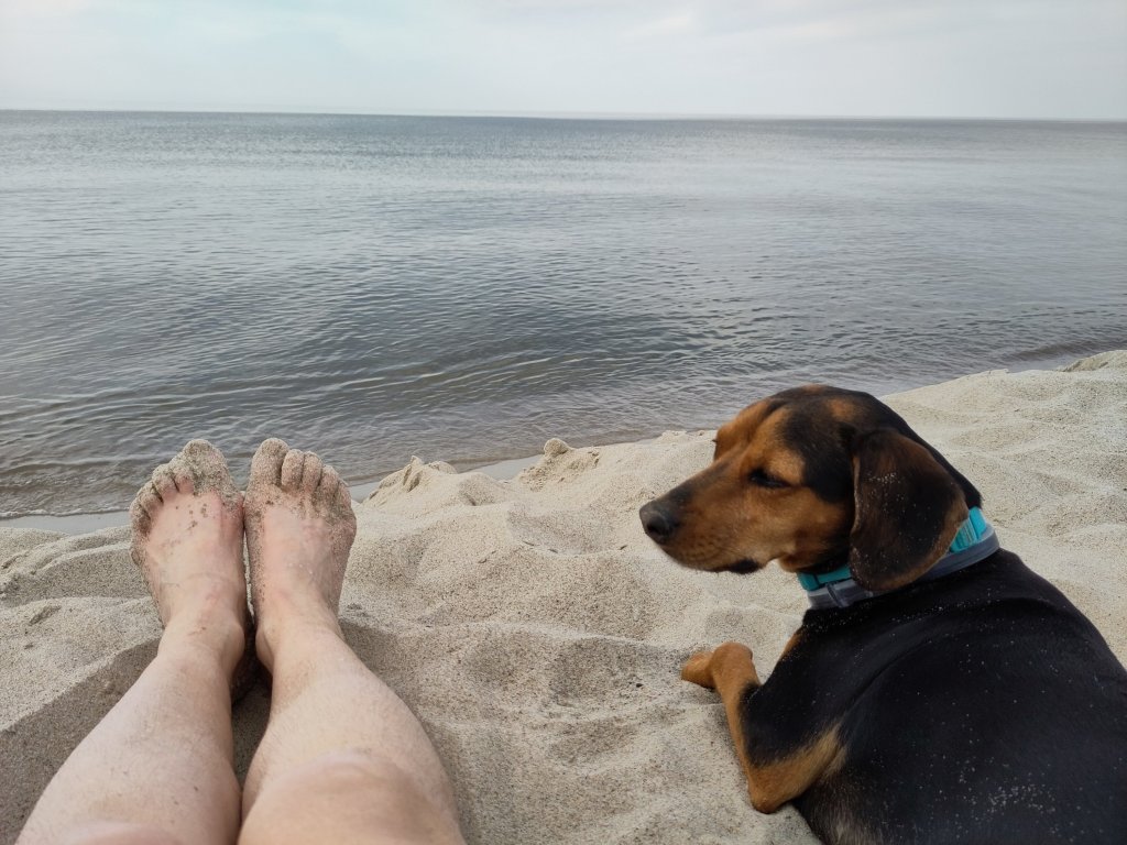 Nida was a sociable campsite, thanks to good shared facilities and many Germans. Whether English speaking or not, they all were friendly. Mainly older couples in campervans given the time of year. Four of them and 3 dogs let me and Railway Dog join them on a 7am 3 hour hike. I’d travelled so long with little in the way of common language and conversations with strangers since Italy, that this was bliss.