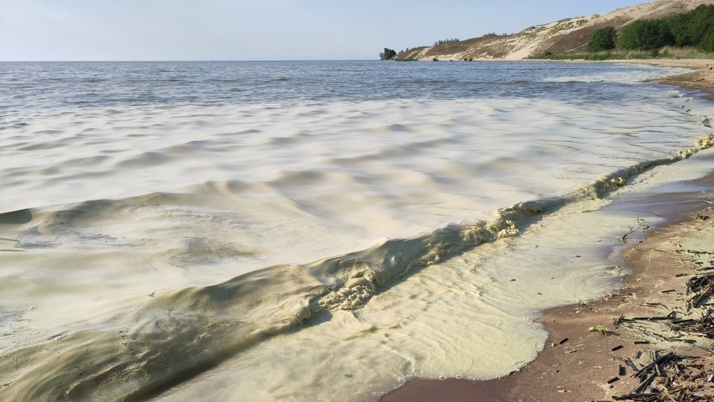 The lagoon had massive patches of yellow algal blooms. Next to these were many washed up dead fish. They must have suffocated from the lack of oxygen in the water. In the Baltic, especially a trapped area like this, pollution from agricultural runoff is a serious issue, including causing such blooms, leaving much of the area seriously depleted in underwater biodiversity. Mass deaths like this are apparently common.