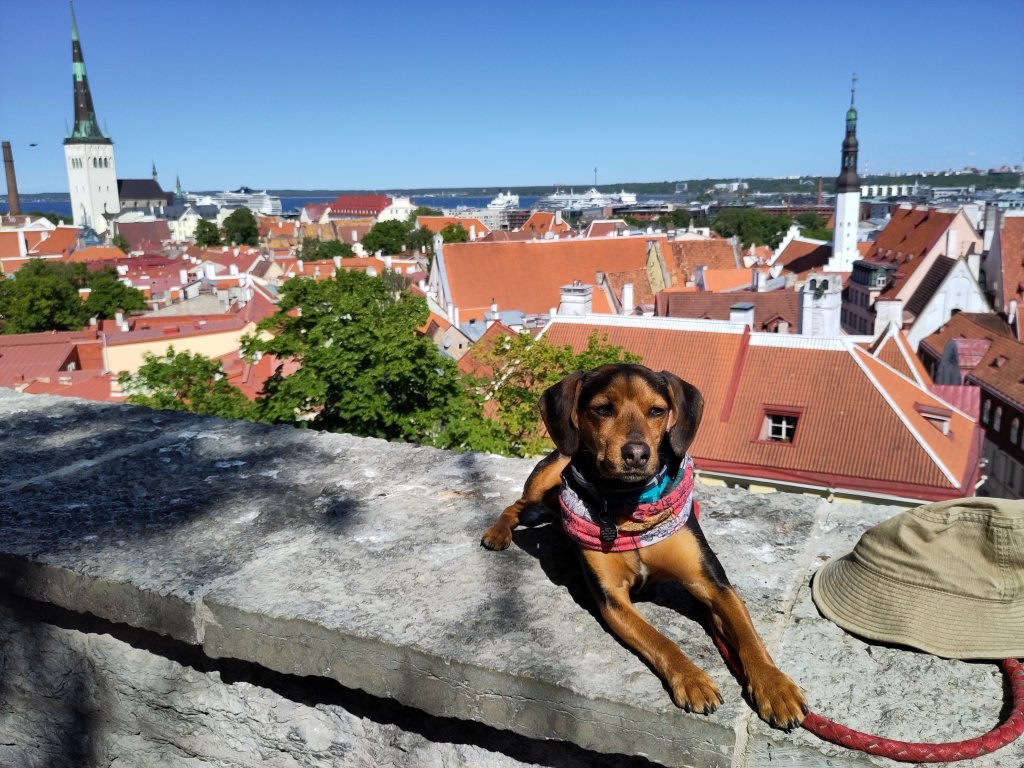 Baspie the Railway Dog found Tallinn Estonia a relaxing city for a dog. Away from the mosquitos of the forests, and lacking in crowds in early June, despite a cruise ship with numbered tour groups doing the rounds. People like dogs in Tallinn, so Baspie got plenty of attention. We took it easy in the gentle long day sunshine.